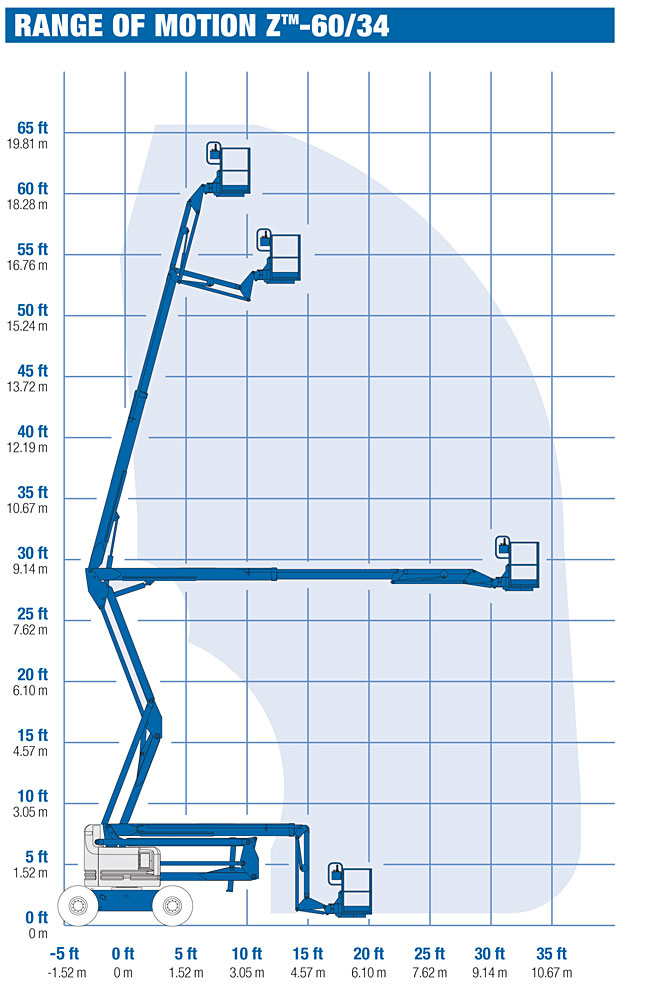 Купить или взять в аренду Коленчатый дизельный подъемник Genie Z60/34 - 20,4 метра в Минске и во всех городах Беларуси (Брест, Гомель, Могилев, Витебск, Гродно, Полоцк, Лида, Светлогорск, Жодино, Солигорск, Новополоцк, Пинск, Слоним, Слуцк и др.) по низкой цене - это легко, просто отставте заявку или позвоните нам.