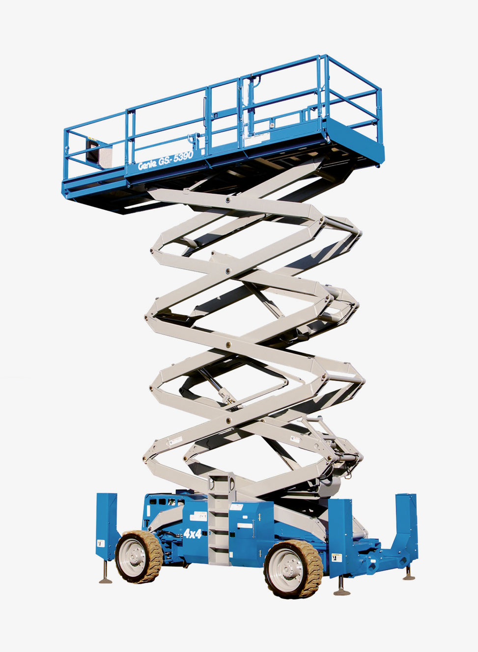 Купить или взять в аренду Ножничный дизельный подъемник Genie GS 5390RT - 18 метров в Минске и во всех городах Беларуси (Брест, Гомель, Могилев, Витебск, Гродно, Полоцк, Лида, Светлогорск, Жодино, Солигорск, Новополоцк, Пинск, Слоним, Слуцк и др.) по низкой цене - это легко, просто отставте заявку или позвоните нам.